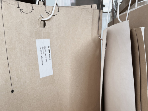 - Nu kan du hænge pap grundformen tilbage på sin plads og det aftegnede mønster er nu klar til at bruge til mønsterudvikling.