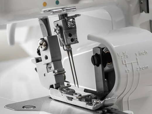 En husholdningsoverlocker har mange funktioner og kan sy med 2, 3 eller 4 tråde. Den kan både bruges til at kantsy vævede materialer og sammensy jersey.