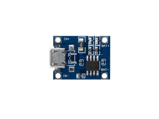 Jeres ladekreds forsynes direkte via en Micro USB forbindelse, eller via IN+ og IN- lodde padsene. De 2 indbyggede LEDer informerer dig om batteriet er under opladning (Rød) eller er fuld opladt (Grøn).