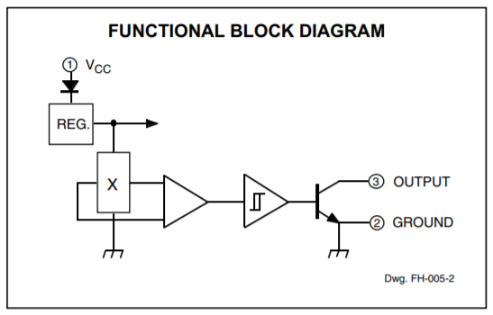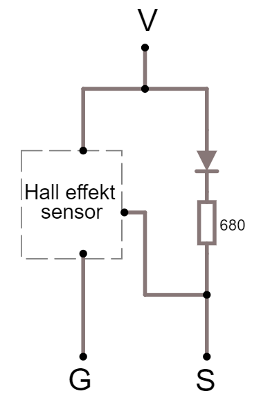 En simpel binær hall effekt sensor der ved relative lave magnetiske felter vil trigge et digitalt signal.