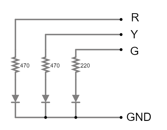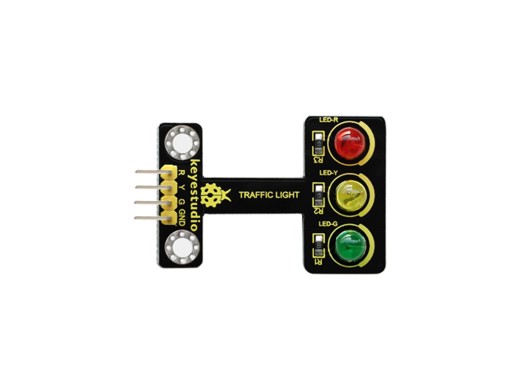 Denne komponent består af 3 LED’er, med en fælles ground (GND) Pin. Der er en grøn, gul og rød LED som hver især kan styres på deres Pins. (R) er den røde (G) er den grønne og (Y) er den gule.