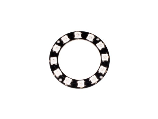 Denne LED ring indeholder 12 NeoPixels som kan individuelt programmeres til at lyse forskellige RBG farver. For en oversigt over RGB farver se her.