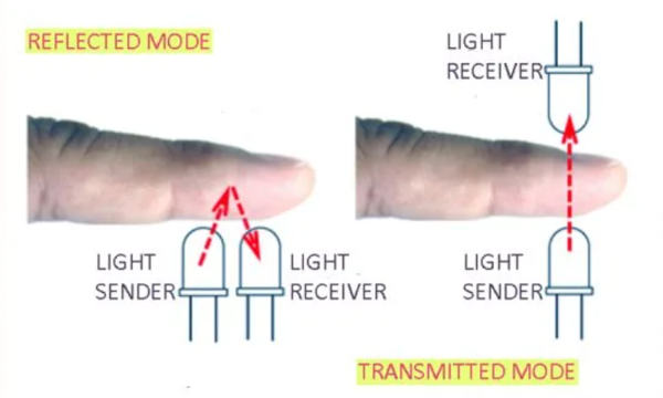 Mængden af lys, der trænger igennem, vil så variere, når der pumpes blod ud til fingeren, derfor kan man med sensoren opfange disse variable målinger og bestemme pulsfrekvensen.