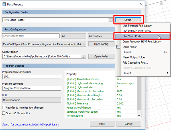 Postprocessor til Fusion 360. Konverterer din værktøjssti i Fusion 360 til et filformat, som CNC'en kan læse.